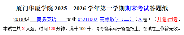 根据学校校历安排,本学期期末统考在教学第18-19周进行,为保证考试顺利进行,按照《厦门华厦学院本科教学工作规程》和《厦门华厦学院课程考核管理规定》等相关文件精神,特要求如下: