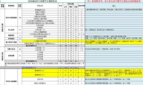 3.2026级XX专业教学计划进度表等表格汇总(内有6张表)